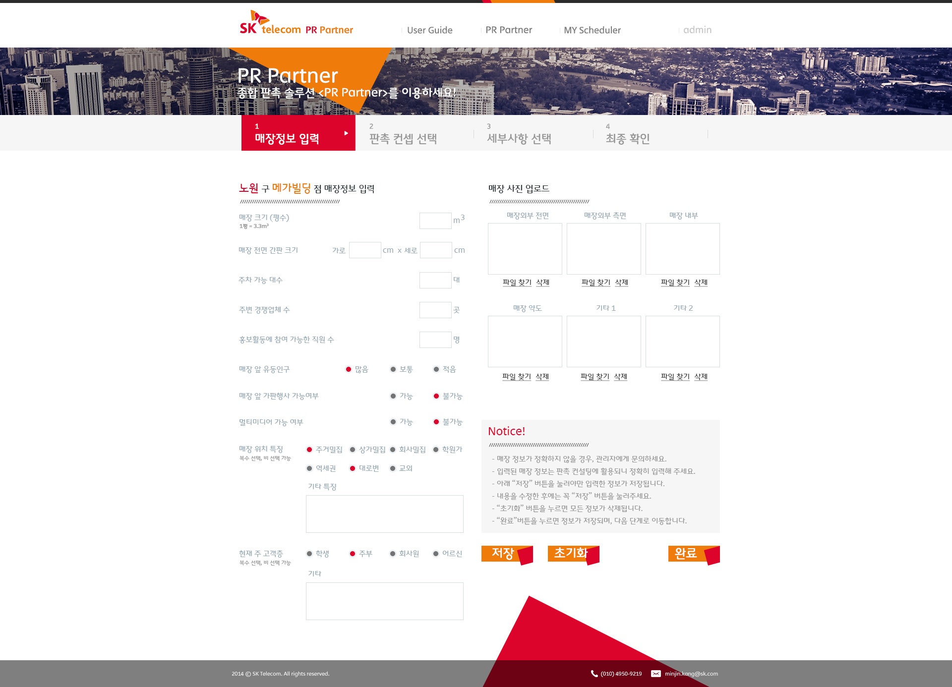 - 매장정보를 입력하는 화면입니다. VMD가 이 내용을 바탕으로 컨설팅을 진행하기 때문에, 정확한 정보와 사진 입력이 중요합니다.