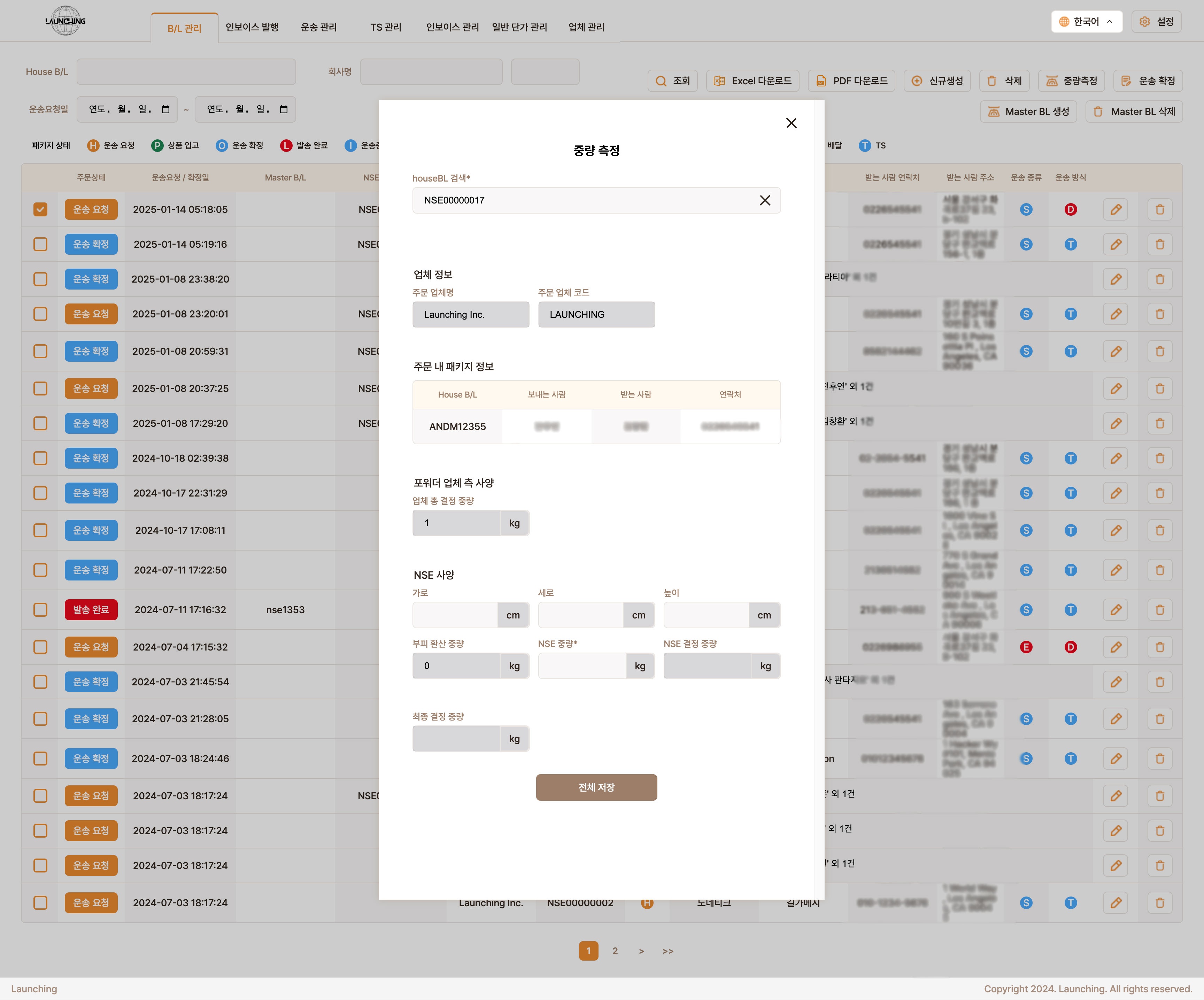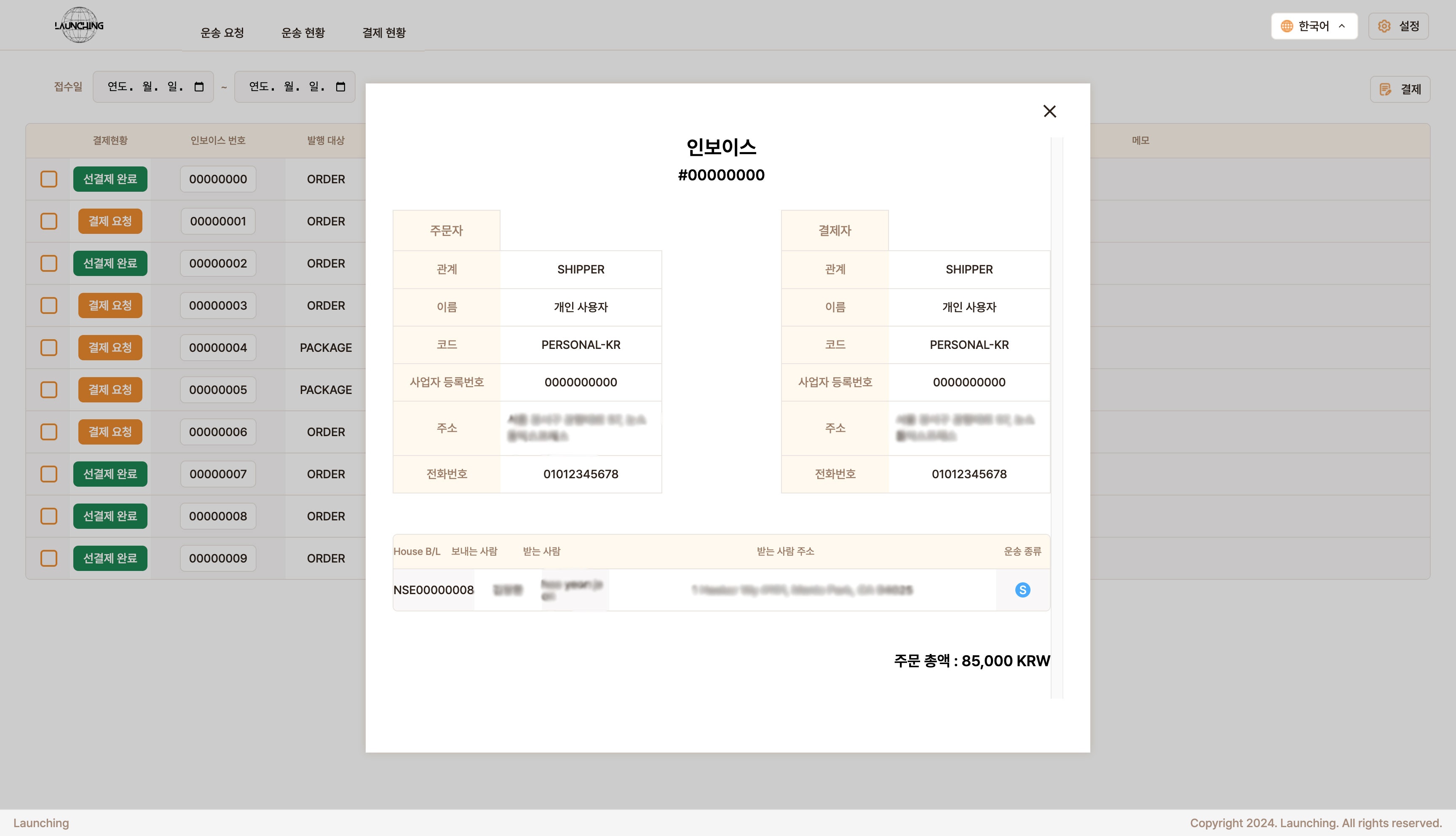- 04국제특송 주문 플랫폼 'Launching' 개발 2023.07. ~ 2024.05.
