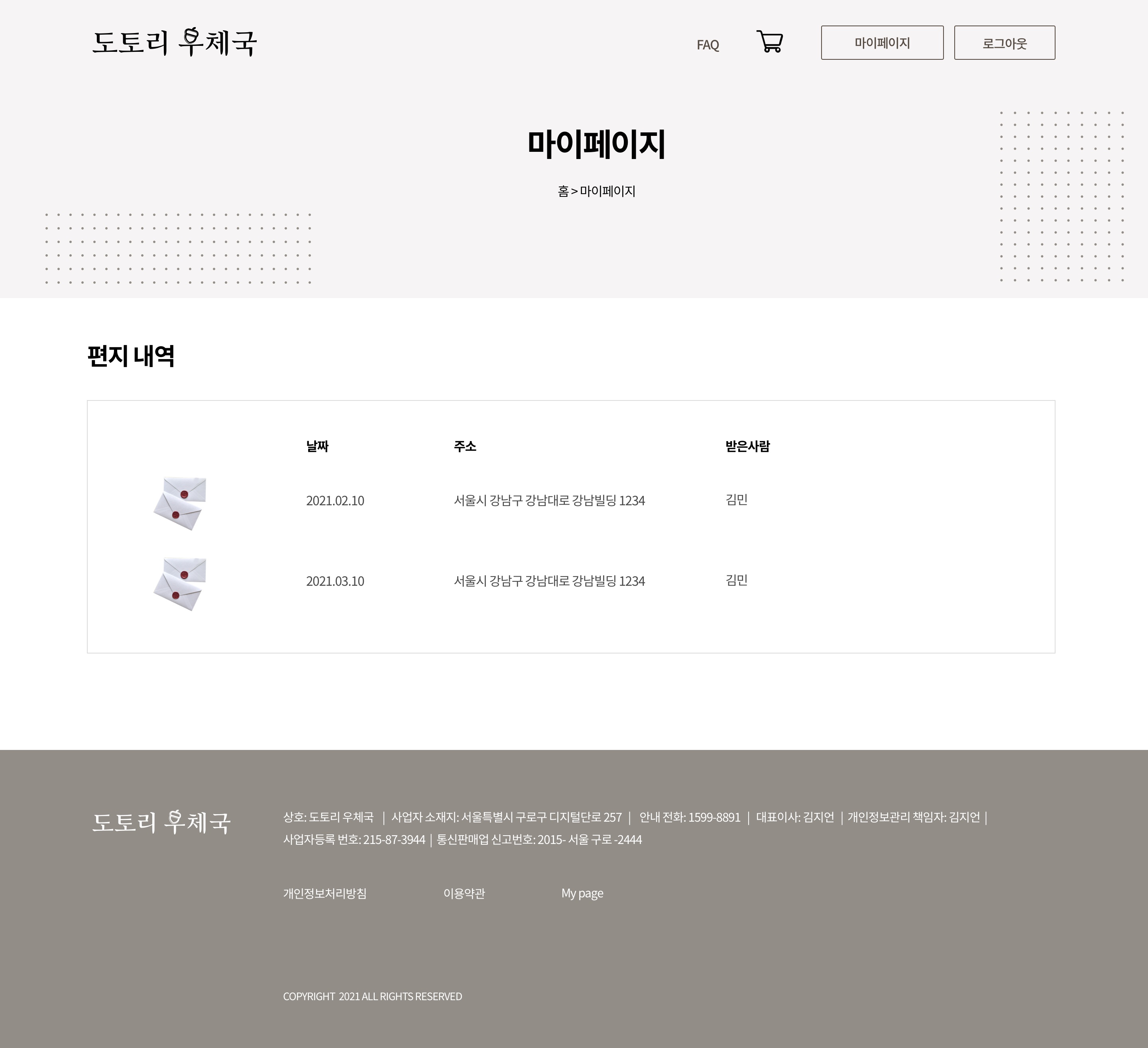 - 08도토리 우체국 – 온라인 익명 편지 서비스 웹사이트 제작 2021.11. ~ 2021.12.