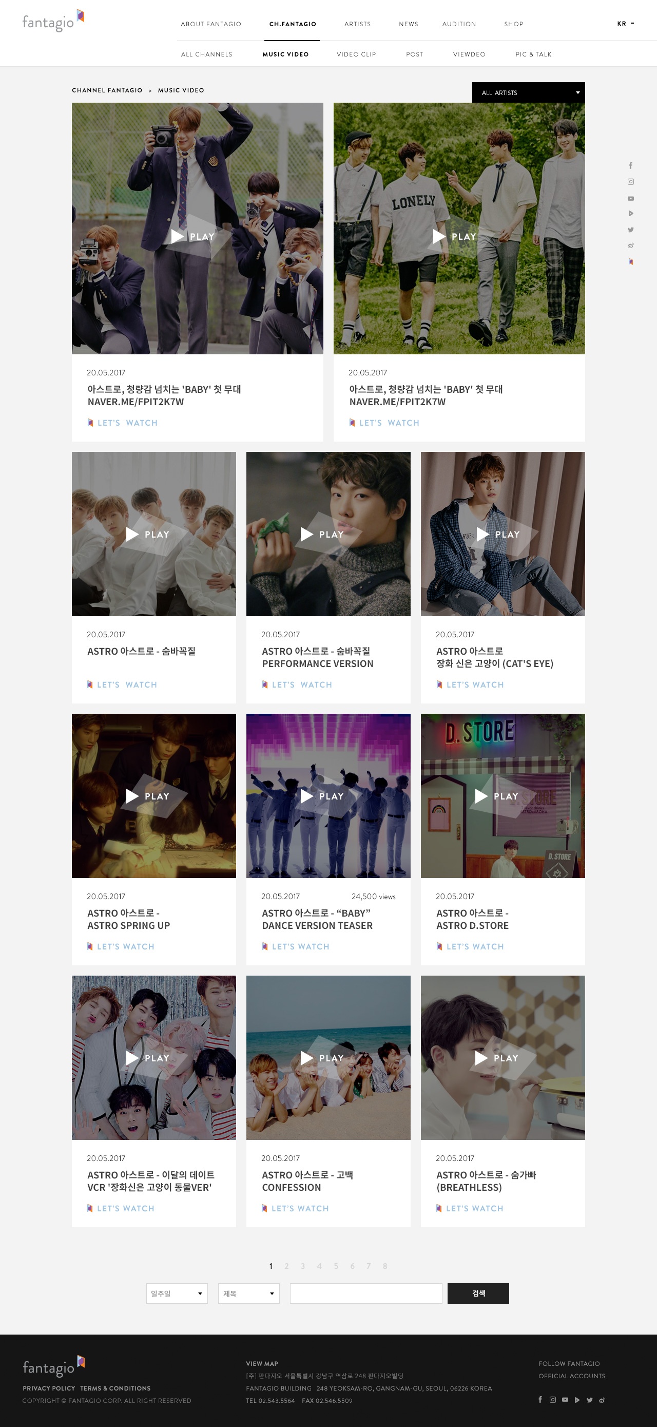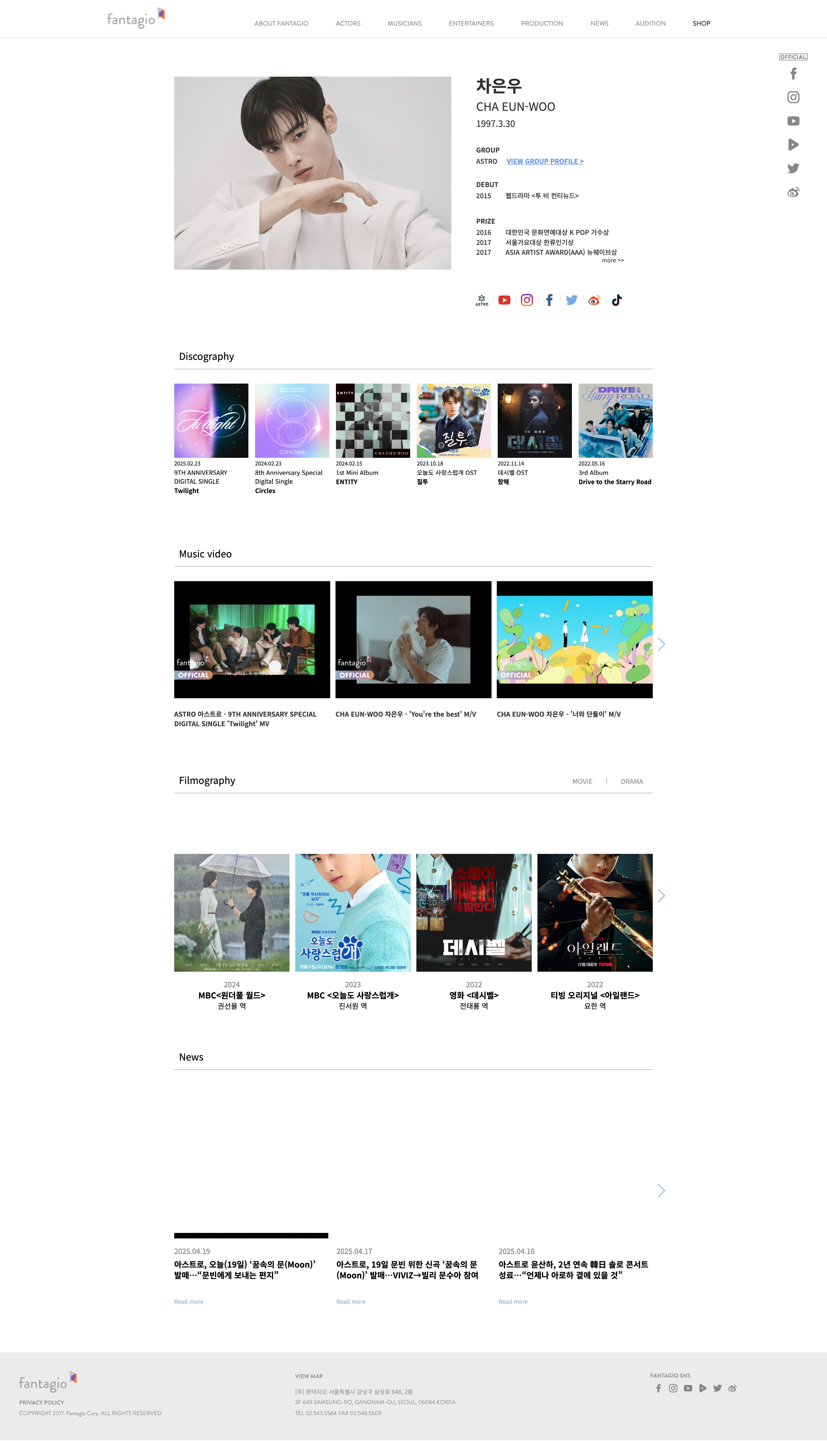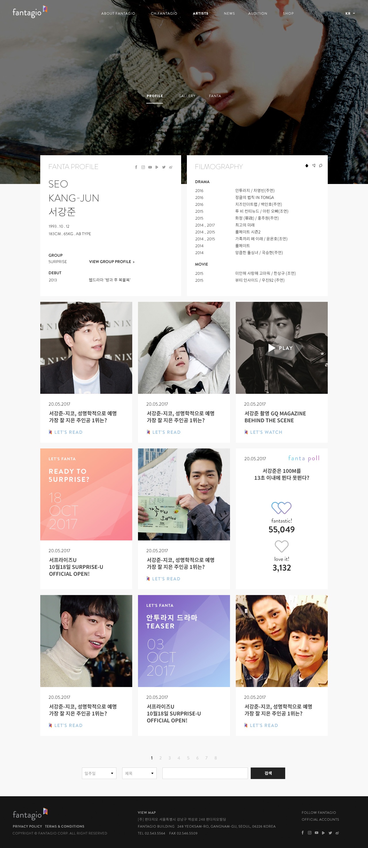 - 18연예기획사 판타지오 워드프레스 웹사이트 구축 2017.07. ~ 2017.11.